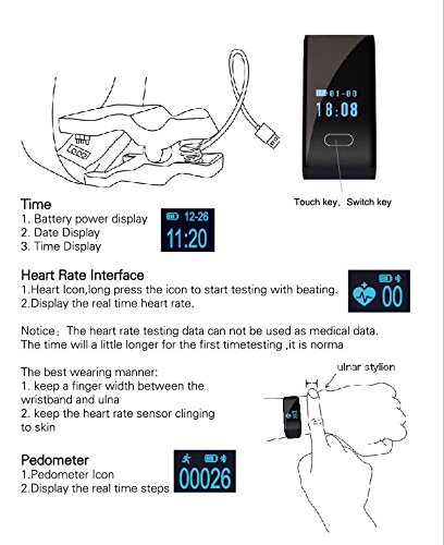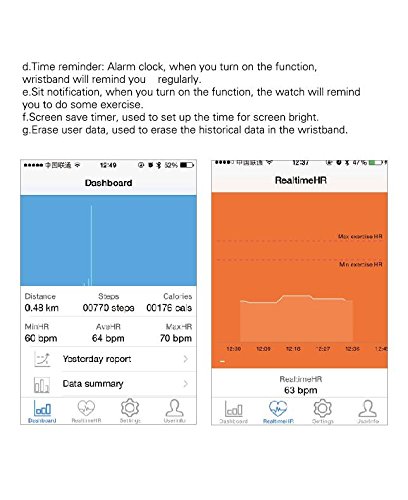 Notifications push from APPs on your phone synchronously, such like phone calls, emails, SMSs, whatsapps, twitter, facebook etc. Show contact names or message overviews. Never miss a message or call when your phone in pocket or on the desk. Heart rate monitor, advanced green light sensor detects your heart rate when you are doing exercise, jogging, yoga. Help you know your own fat-burning heart rate. Lose your weigh scientifically. More functions: Sedentary reminder, sleep monitor, alarm clock.