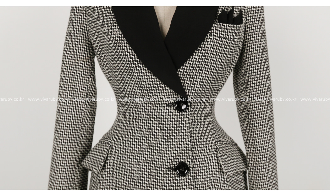 インナーのボタンでウエストをつかむ与えスリムに演出が可能です。