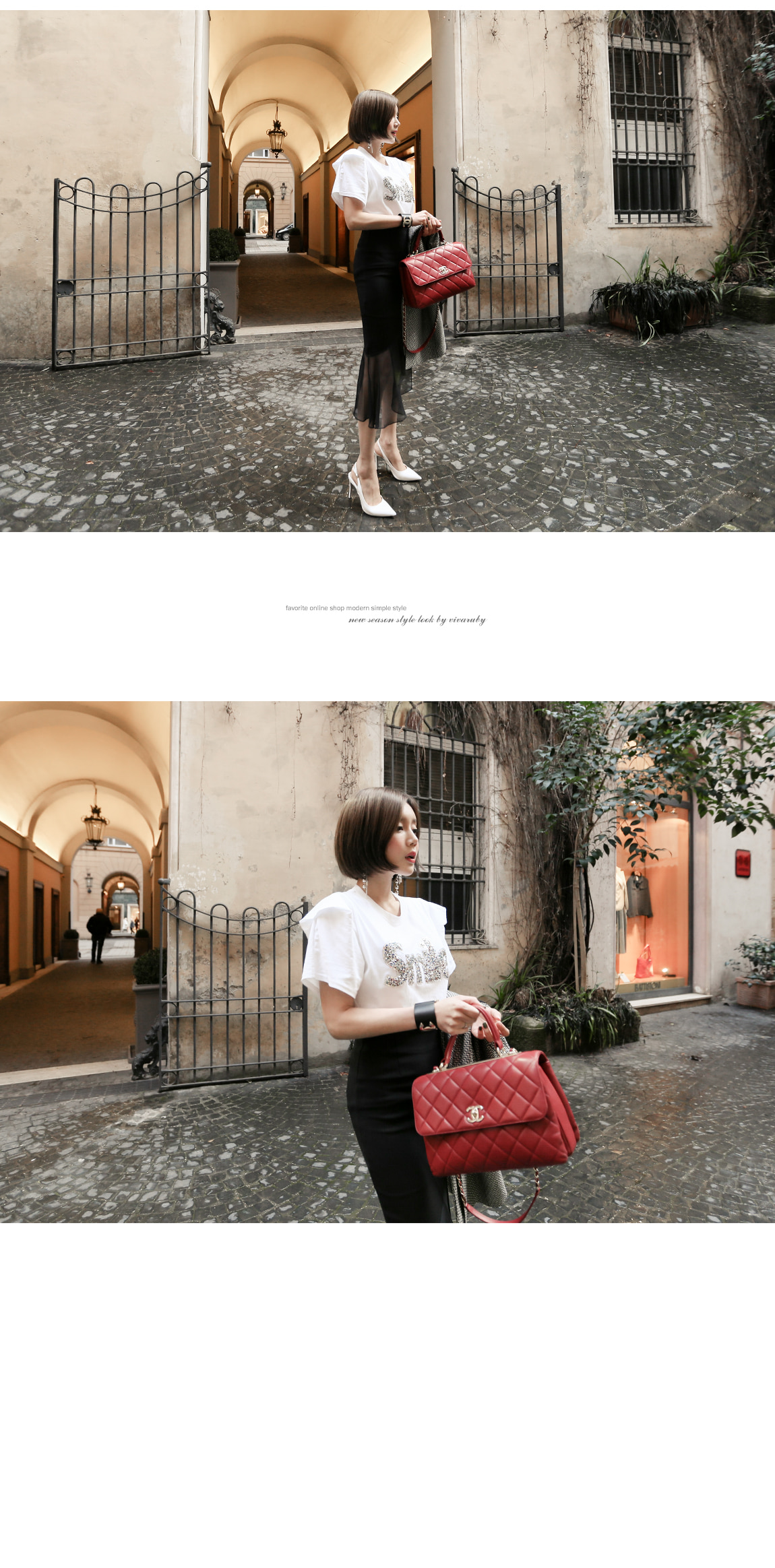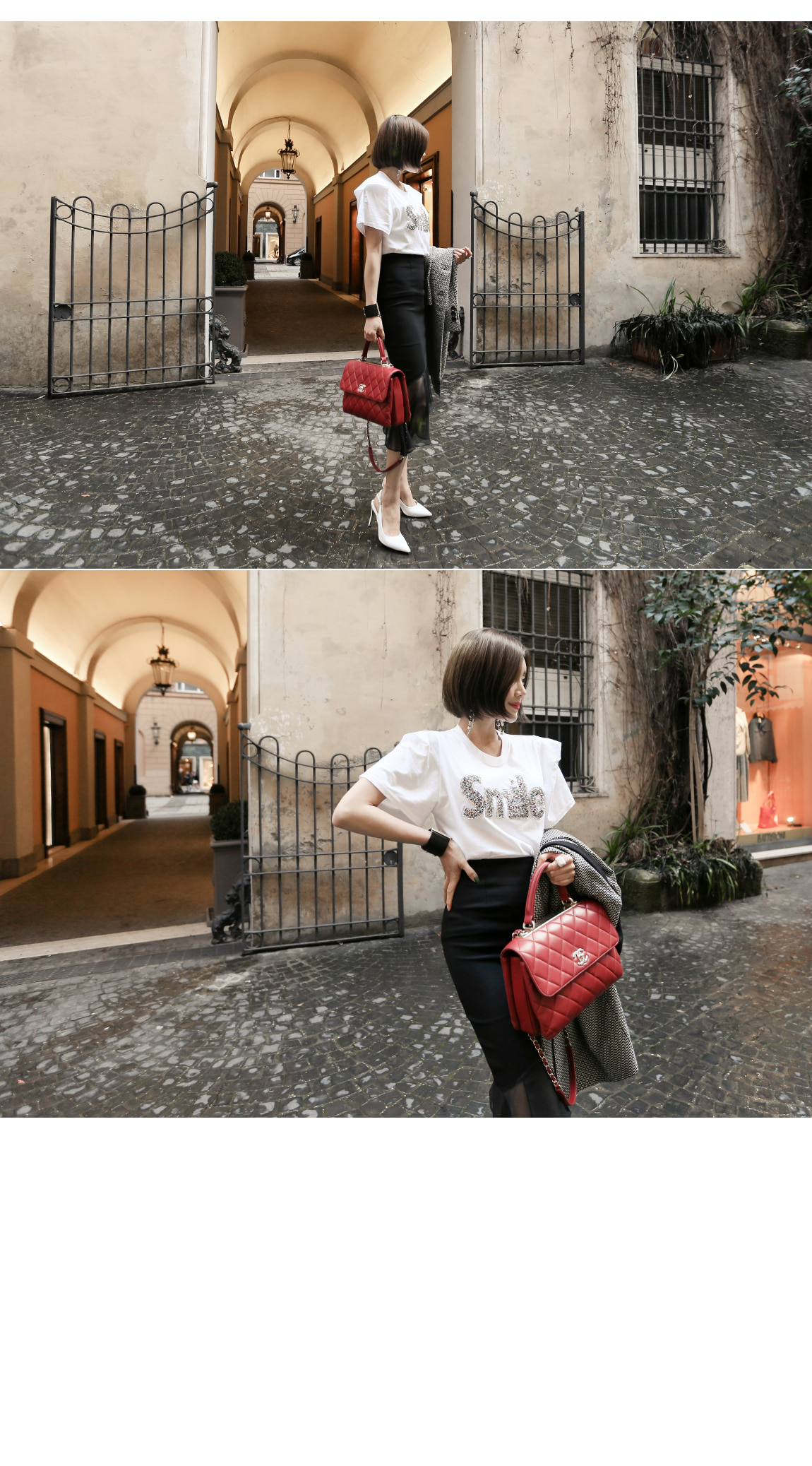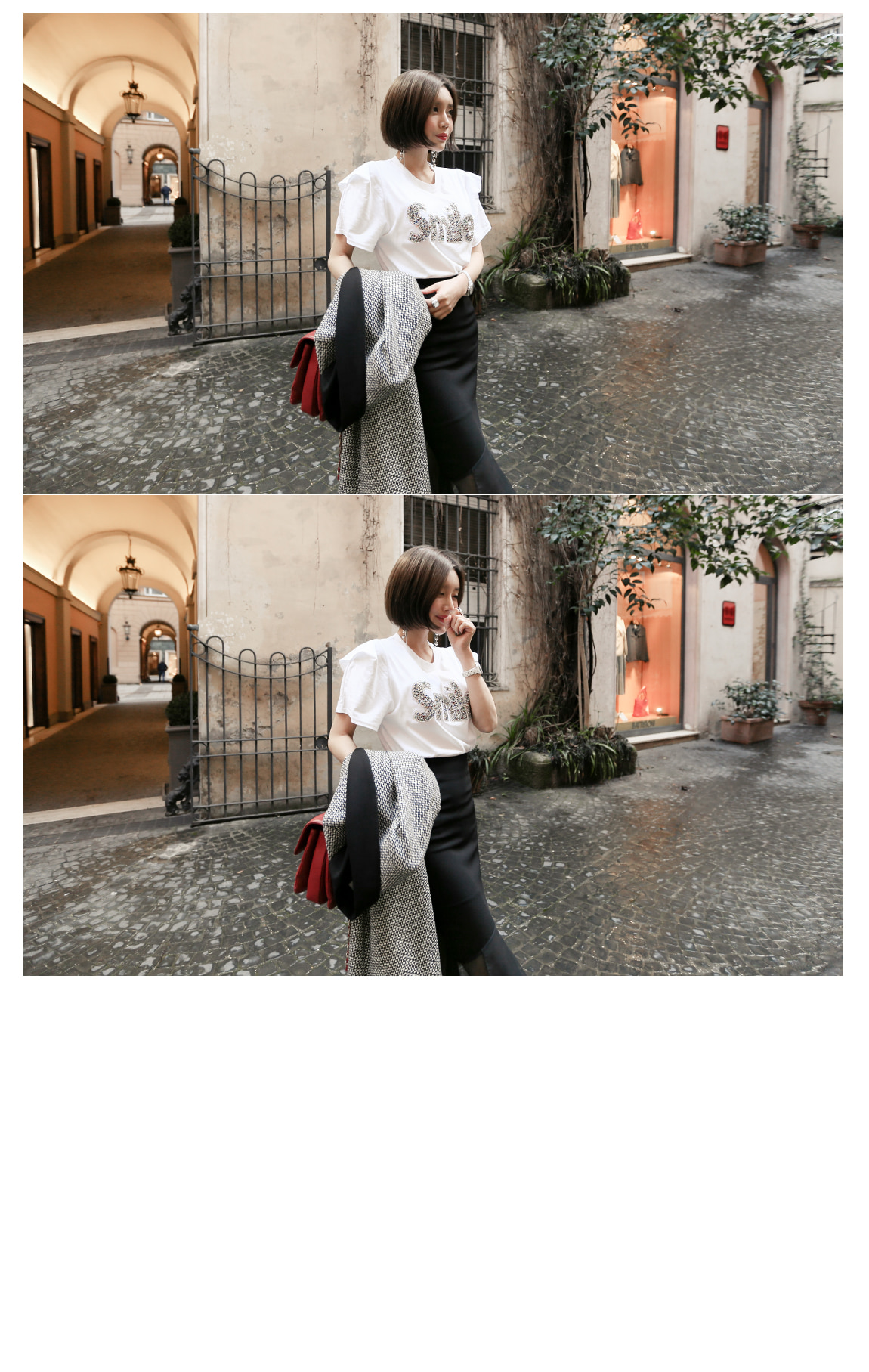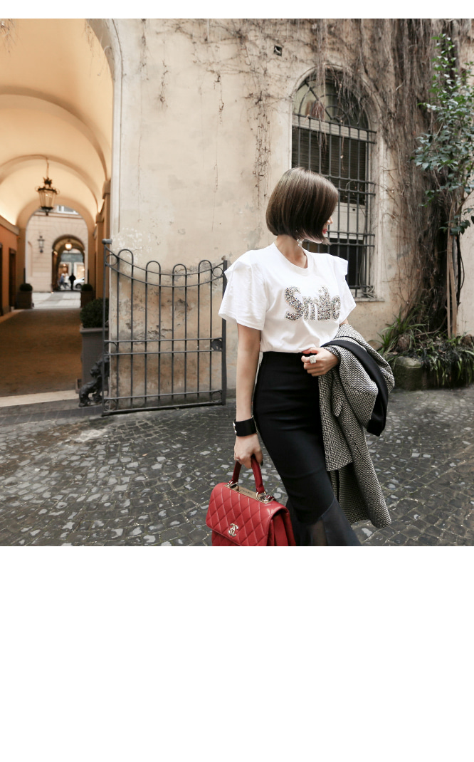 ラウンドカラーにフェミニンなポイントを与え、
