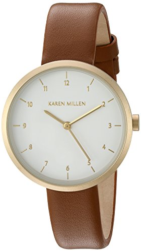 Karen Millen Women's Quartz Brass-Plated-Stainless-Steel and Leather Dress Watch, Color:Brown (Model: KM135TG)