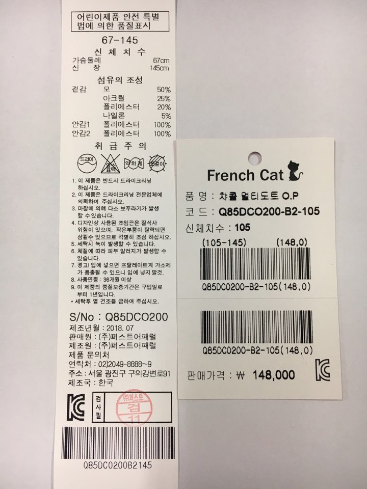 제품소재 : 세탁방법 및 취급시 주의사항 : 단독 드라이크리닝 또는 뒤집어서 단독 손세탁을 권장합니다. 취급시 주의사항: 핫픽스 , 자수, 스팽글 등 장식이 있는 경우 장식의 손상을 막기위해 뒤집어서 단독 세탁하여 주십시오 * 데님상품은 단독으로 세탁하시고, 물빠짐/ 이염에 주의하여 세탁하시기 바랍니다. 충전재 특성상 바늘구멍에서 털이 나올수 있습니다. 제품에 따라 마찰에 의해 보푸라기가 다소 발생할수있으니 주의하여주십시오 열이나 불꽃에 가까이 가면 녹거나 화재의 위험이 있습니다. 물세탁 제품인경우 새제가 제품에 직접 닿을경우 탈색이 될수있으니 반드시 새제를 용해한후 제품을 담그시기바랍니다. 물세탁 제품인경우 표백제나 표백성분이 있는 새제는 사용하지 마십시오.니트 제품인경우 그늘에서 모양을 가지런히 하여 뉘어서 건조하십시오. 라벨을 꼭 참조 해주세요.