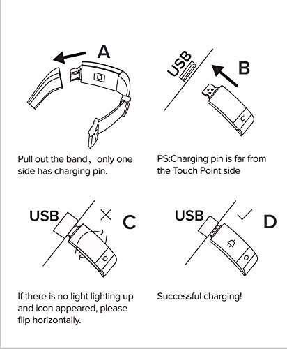 Why can't I get my fitness tracker charged?Please refer to the product images, or if you still can't get battery charged, contact us for further help.