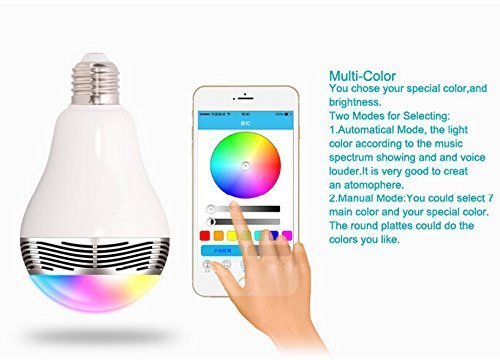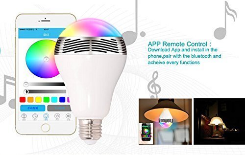 -. Feature : Einzigartige Technologie - 2-in-1 Design - Glühbirne und Lautsprecher! Leistungsstarke 30MM 6W Treiber für exzellente, klare Sound mit super Bass. Wird von einem Smartphone oder Tablet mit Bluetooth gesteuert. Funktioniert mit allen Bluetooth-fähige Geräte. / Drahtlose Fernbedienung über eine anspruchsvolle Freie App - viele Funktionen und 1000 von Farben zur Auswahl, um eine unterschiedliche Atmosphären zu erstellen. / Dauern für 10000's Stunden, bevor es ersetzt werden muss. E27 Lampe Basis, Standard-Schraube im Type - konvertieren die Lampe über die korrekte Montage suchen Amazon mit diesem Produkt-Code: B003GSK5O4. / 4.0-Bluetooth für eine schnelle Anbindung. 10 Watt Licht und 15 Watt-Lautsprecher. Ideal für Schlafzimmer, Küche, Bad, Flur, usw. zu studieren. Tragbare & Easy Installation - Plug & Play. / Volle Unterstützung des Personals bei IDC. E-Mail oder rufen Sie uns an unser freundliches Support-Team sprechen. 12 Monate Garantie alle IDC-Produkte.