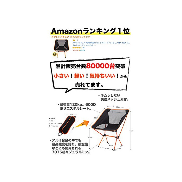 원본상품명: アウトドアチェア PONCOTAN ウルトラライト フィットチェア くて丈夫 ジュラルミンチェア コンパクト 折りたたみ イス 耐過重120kg 超量 870g 持ち運びに便利な用ケス