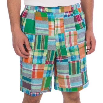 (Berle)/Men/Shorts/DIRECT FROM USA/Berle Patch Madras Shorts - Pleated (For Men) in Green Multi - Closeouts
