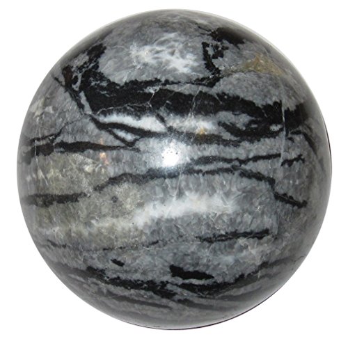 Your gorgeous ball is made from gray zebra limestone. This solid limestone sphere has silvery gray tone with black zebra stripes and white pattern. It is polished smooth, yet retains natural lines and ridges as intended by Mother Earth. Receive the exact one featured when you order from Satin Crystals