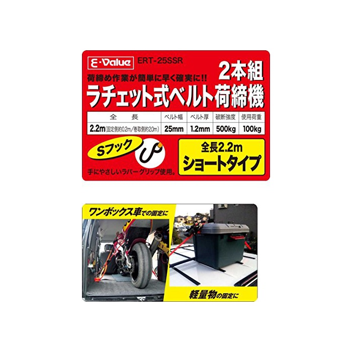 원본상품명:E-Value ラチェット式ベルト荷締機 ショトタイプ ERT-25SSR 2pcs
