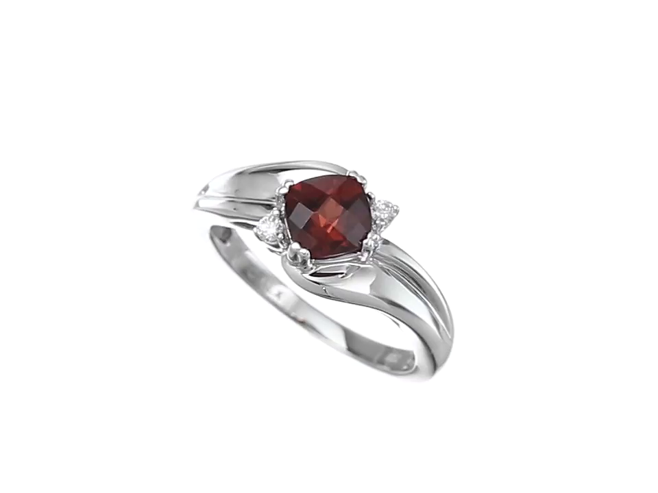 10k White Gold Cushion Gemstone and Diamond Accent ring, Size 7