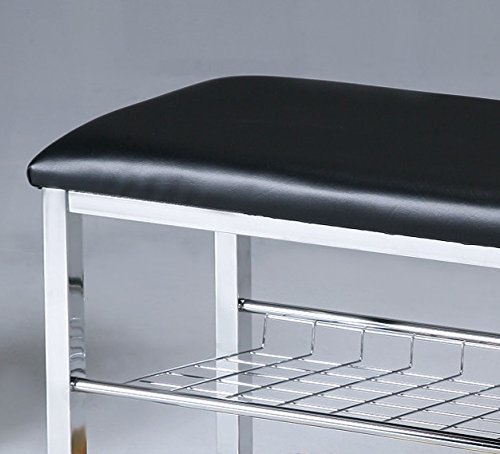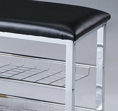 -. Binding : Kitchen -. Brand : Roundhill Furniture -. Color : Black -. EAN : 0612524906906 -. Feature : Black/Chrome Metal Shoe Rack Organizer and Hallway Bench / Can be used as a shoe organizer, bedroom and hall way bench with faux leather upholstery seat cover on a chrome metal base / Features 2-tier of shoe storage / Dimensions (INCH): 31.5x12x19H / Ready to assemble; Photo may slightly different from actual item in terms of color due to the lighting during photo shooting or the monitor's display -. IsAutographed : 0 -. Label : RH -. Manufacturer : RH -. Model : 3401 -. MPN : 3401 -. NumberOfItems : 1 -. PackageQuantity : 1 -. PartNumber : 3401 -. ProductGroup : Furniture -. ProductTypeName : HOME_FURNITURE_AND_DECOR -. Publisher : RH -. Studio : RH -. Title : Roundhill Furniture Metal Shoe Bench with Faux Leather Seat, Chrome and Black -. UPC : 612524906906
