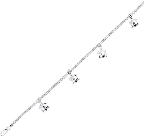 -. Title : 10" Rhodium Plated 925 Sterling Silver Shiny Oval Link Anklet w/ Lobster Clasp & Turtle Charm