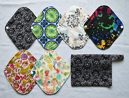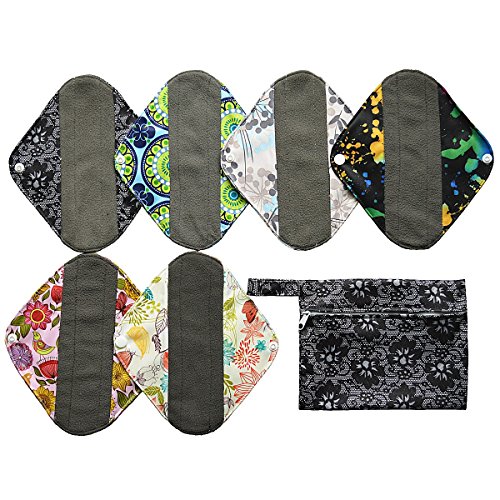7pcs Set 1pc Mini Wet Bag +6pcs 8 Inch Charcoal Bamboo Mama Cloth/ Menstrual Pads/ Reusable Sanitary Pads / Panty Liners