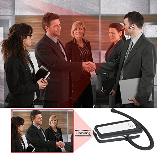 -. Feature : 【Mini Spy Camera】: this mini camera looks like an ordinary bluetooth headset, but it's not a real bluetooth earphone, only is a spy camera. The lens is hidden at the end of the headset, allows you to record what happens in front of you without drawing others' attentions. / 【Battery Operated Camera】: charging time:2 hours; battery capacity:350mAh; battery charging voltage:DC 5V; operating battery life time:1 hour / 【8GB Micro SD Card】: built-in 8GB Micro SD Card, but it can support 32GB Micro SD Card in Max. You can format your sd card before using. / 【Camcorder HD 1080P】: high definition camera, 1920×1080P HD video resolution, support taking photo function. / 【Hidden Video Recorder】: support real-time audio & video recording; support AVI video format.