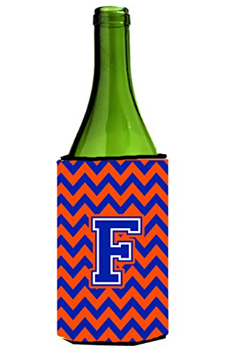 Letter F Chevron Orange and Blue Wine Bottle Beverage Insulator Hugger CJ1044-FLITERK