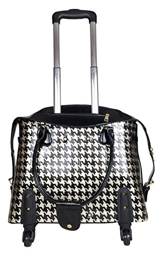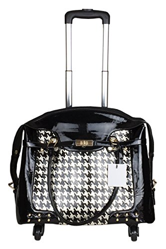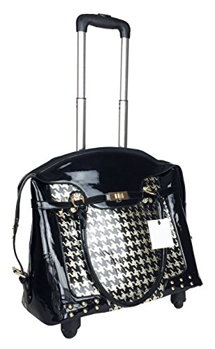 -. Binding : Electronics -. Brand : Trendy Flyer -. Color : Black, Gold -. EAN : 0746839982895 -. Feature : Color: Black and Gold / Material: Polyurethane/ Pattern: Houndstooth / Size: 17" H (include wheel) x 19" L x 8" W/ Weight: 6.5 lbs / Padded laptop area can fit laptop 13" wide, 10" tall and 1.5" thick using securing velcro straps / Padded laptop area can fit laptop 13" wide, 13" tall and 1.5" thick without using securing velcro straps / Additional Info: Height From Top of Handle to Floor with Handle Fully Extended: 38" -. Label : Private -. Manufacturer : Private -. PackageQuantity : 1 -. ProductGroup : PC Accessory -. ProductTypeName : CARRYING_CASE_OR_BAG -. Publisher : Private -. Studio : Private -. Title : Trendy Flyer 18" L Computer/Laptop Carry Bag Duffel Rolling 4Wheel Spinner Lage Houndstooth Gold -. UPC : 746839982895