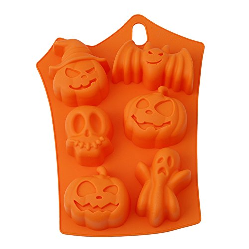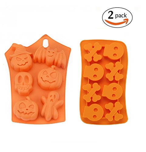 Joinor Set of 2 Silicone Halloween Candy / Ice / Cake / Chocolate Molds - Party Supplies with Pumpkins Skulls Crossbones Ghosts Bats Random Color