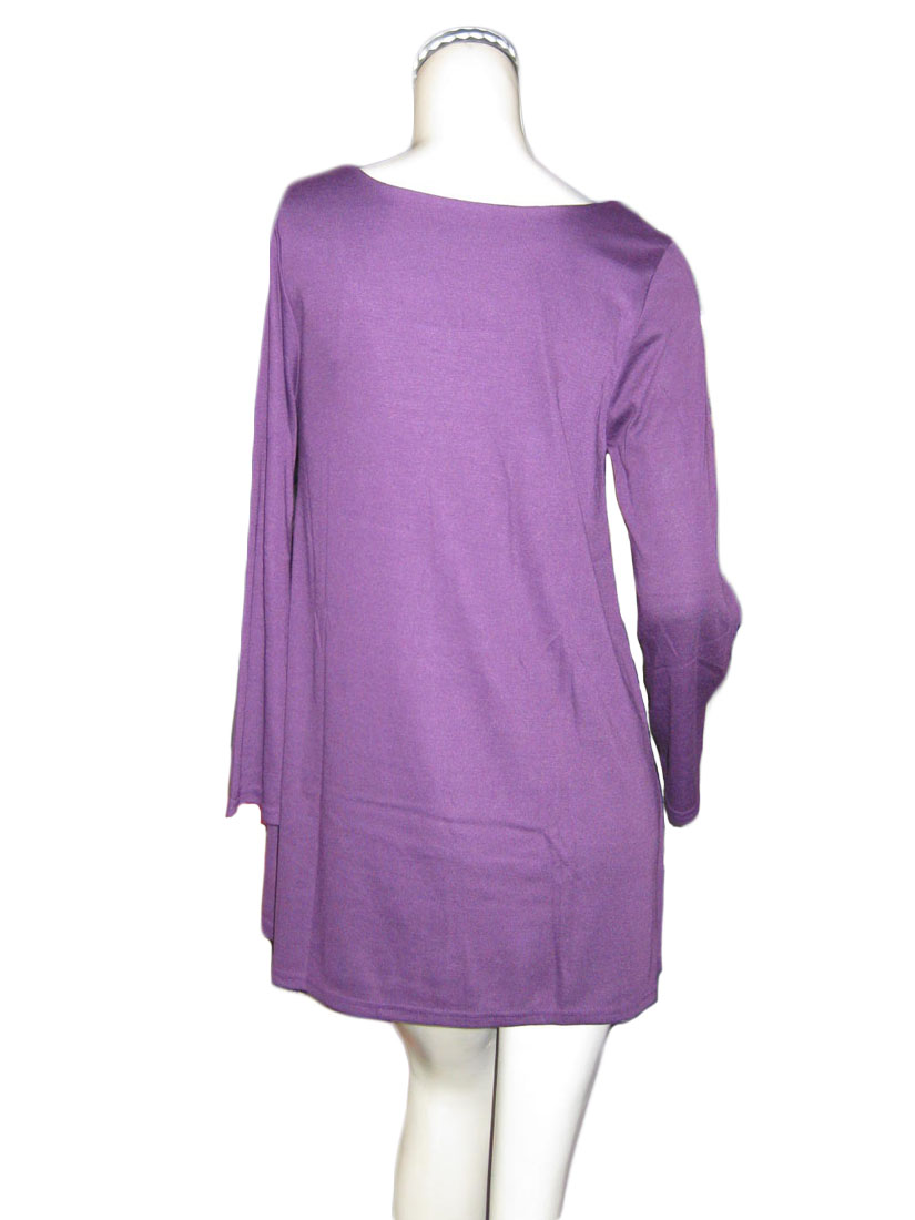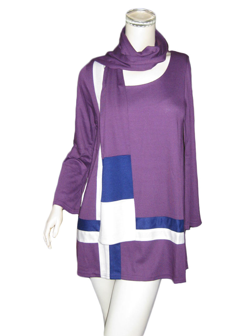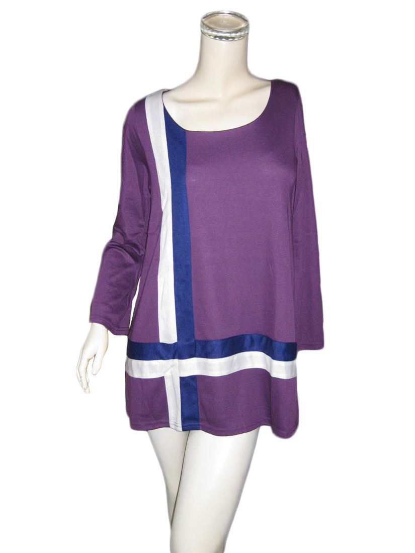 パープル地にホワイトとネイビーの切替がお洒落なチュニック。