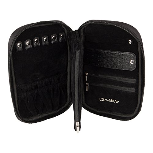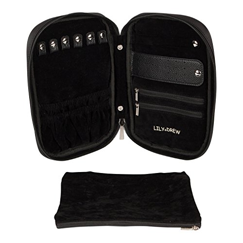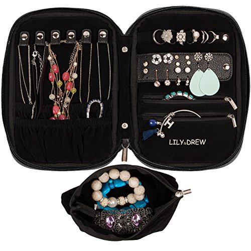 Lily & Drew Travel Jewelry Storage Carrying Case Jewelry Organizer with Removable Pouch (V1 Black)
