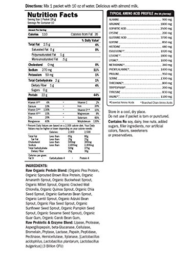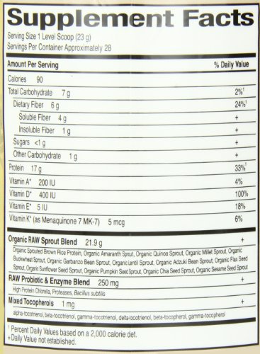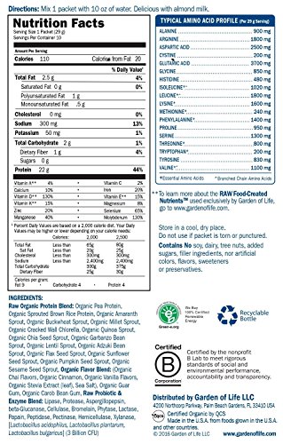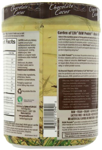 -. Binding : Health and Beauty -. Brand : Garden of Life -. Color : Parent -. Feature : Provides raw organic sprouted protein and live probiotics and enzymes / Excellent source of protein 17 grams and 33% daily value / Contains vitamin code raw food-created nutrients with their unique code / Suitable for vegetarian and vegan diets / Easily digested supports digestive health and function with live probiotics and protein-digesting enzymes -. IsAdultProduct : 0 -. Label : Garden of Life -. Manufacturer : Garden of Life -. PackageQuantity : 1 -. ProductGroup : Health and Beauty -. ProductTypeName : HEALTH_PERSONAL_CARE -. Publisher : Garden of Life -. Studio : Garden of Life -. Title : Garden of Life Raw Organic Protein