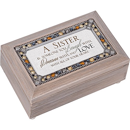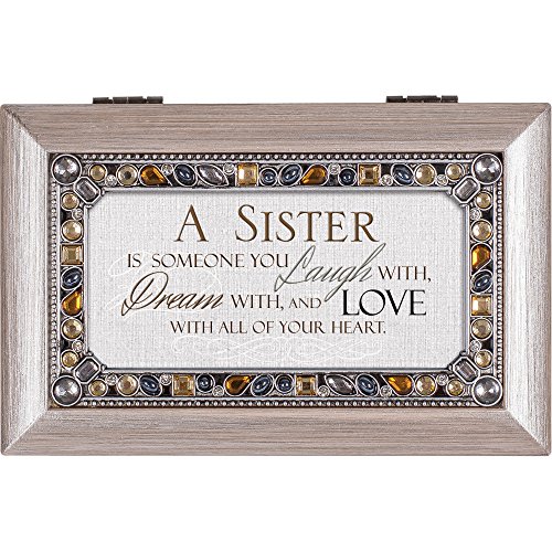 A Sister You Laugh With and Love Brushed Pewter Finish Petite Jeweled Music Box Plays Edelweiss