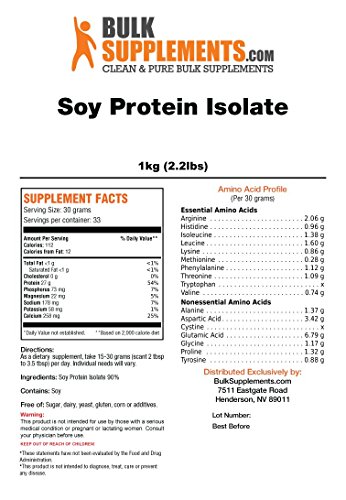 Bulksupplemets Pure Soy Protein Isolate Powder (1 kilogram)
