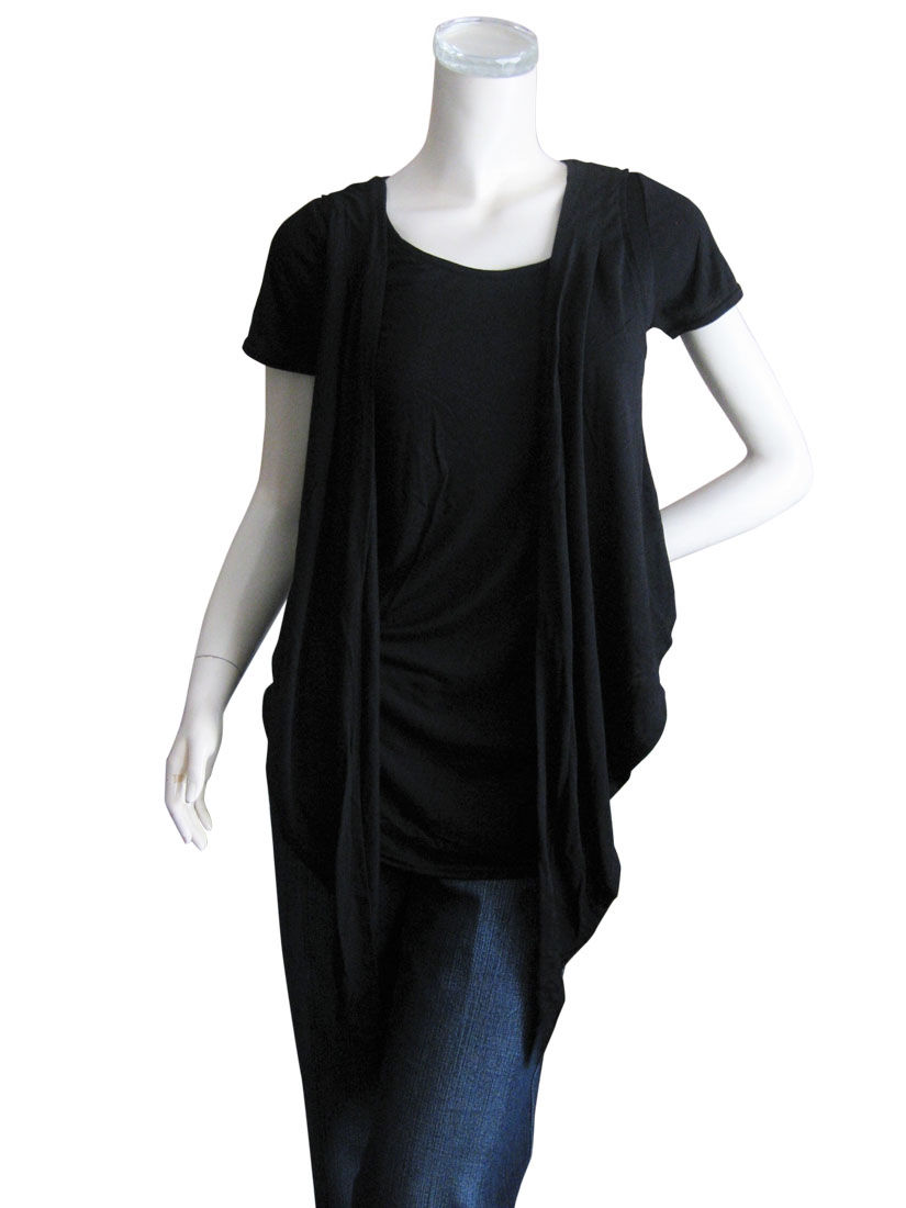 1枚で大人コーデ♪レーヨン混 ジレを重ねたようなデザインチュニック M