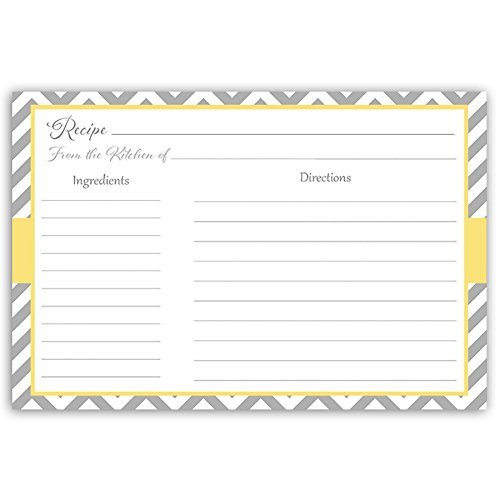 Recipe Cards, Double Sided, 4 x 6, Chevron Stripes, Yellow, Gray, Bridal, Wedding, Shower, Housewarming, Gift, Set of 24 Printed Cards,,