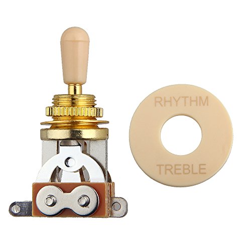 Studio : Kmise Publisher : Kmise Binding : Electronics Product Description 3-way toggle switch for LP style electric guitars? ?or guitar project. Easy to control the tone of pickup Help your guitar pickup function perfect Including knurled mounting nut and flat washer ,ivory? Rhythm Treble Washer Ring The switch tip is replaceable Material: Metal and rubber Height: Approx. 2 inch / 5cm Package include: 1 x 3 way toggle switch 1 x? Rhythm Treble Washer Ring 0