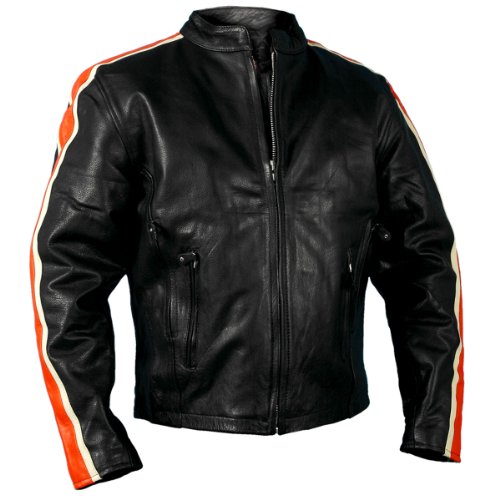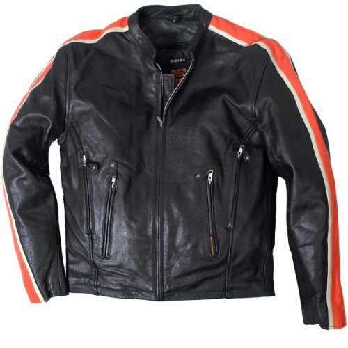 Hot Leathers #47 Black Men's Jacket with Orange and Cream Arm Stripes