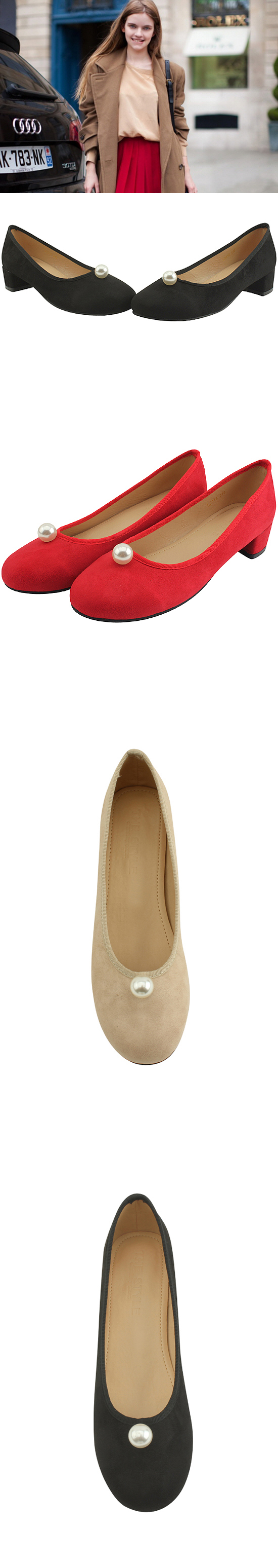 Pearl suede low heel flat shoes loafers high heel shoes women teenager autumn natural fashion women casual
