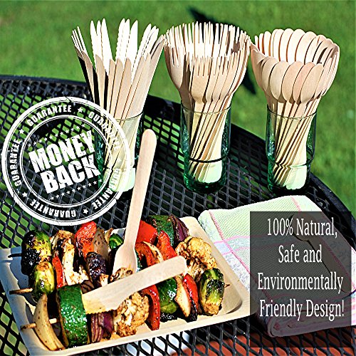 - NATURAL, SAFE AND FDA-APPROVED BIRCHWOOD! – Unlike other flimsy wooden utensils that smell funny and feel like a doctor’s tongue depressor, our premium biodegradable wooden cutlery set is made of 100% natural, hypoallergenic and carefully selected birchwood, so rest assured that it’s non-toxic, chemical-free and smells and feels great!