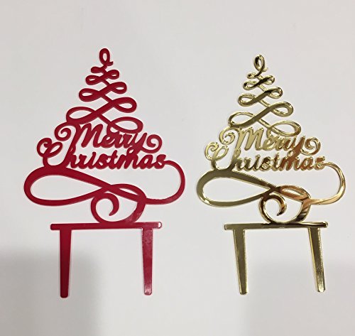 [USA-SALES] Merry Christmas Cake Topper, Color Shiny Red, Christmas Cake Decorations, Christmas Party Decorations, by USA-SALES Seller