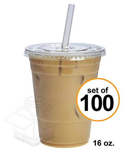 - 100 sets 16 oz. Plastic Clear Cups with flat Lids is Great for cold drinks like Iced Coffee, Smoothies, Bubble/Buba Tea, Milkshakes & Frozen Cocktails, water, sodas, and juices.