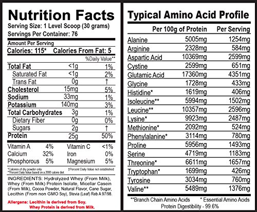 -. Feature : 5 pounds of Ultra High Grade Protein / 27g unflavored and 25 g flavored of slow and fast blended protein per serving / All natural protein sweetened with stevia / No artificial flavoring or sweeteners / Hydrolyzed whey, micellar casein, whey protein isolate