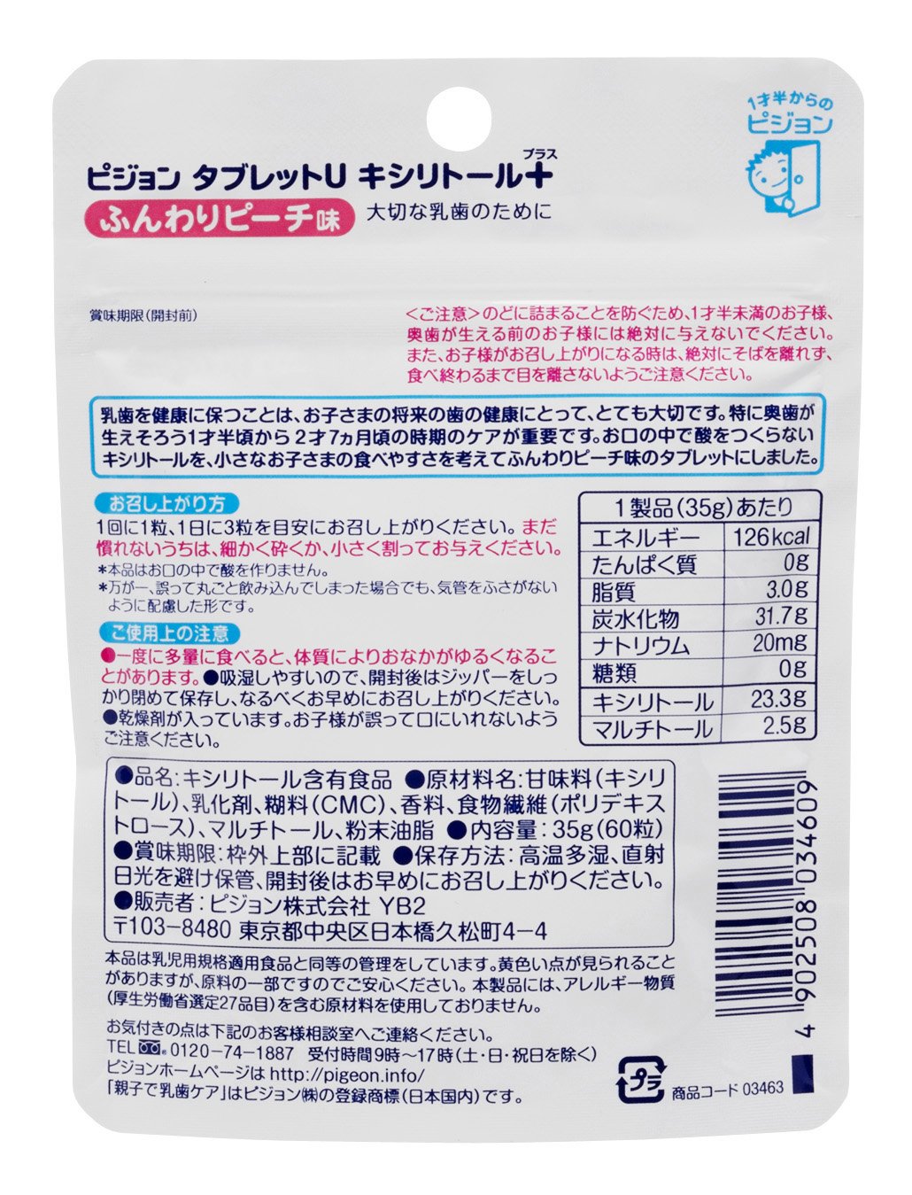 OYAKODENYUUSHI Care Tablet U HONNORI Peach Taste From 1 Year and 6 Months 60tablets xylitol dental care tablets