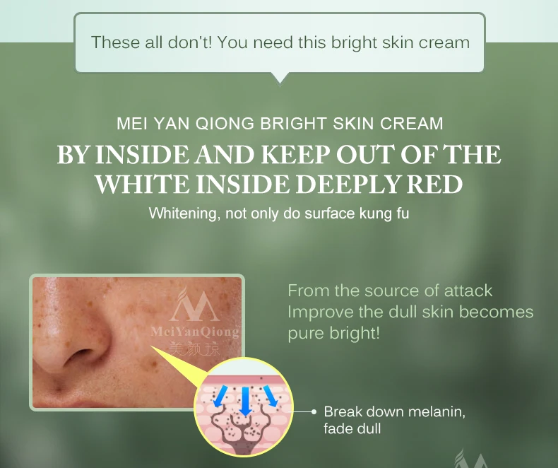 Skin bothered by intractable chloasma」ャ sunburn」ャ butterfly rash」ャcyasma」ャ age pigment and freckle and consequent problems like fleck」ャ color spots」ャrough skin」ャacne skin and dark skin.