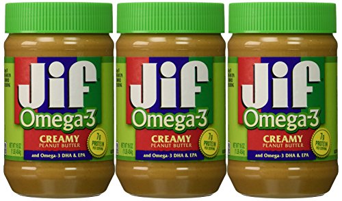 Jif Omega-3 Creamy Peanut Butter, 16 Ounce (Pack of 3)