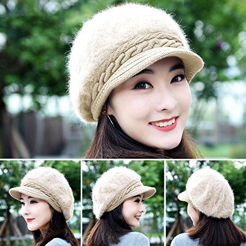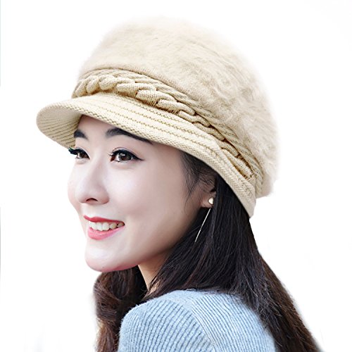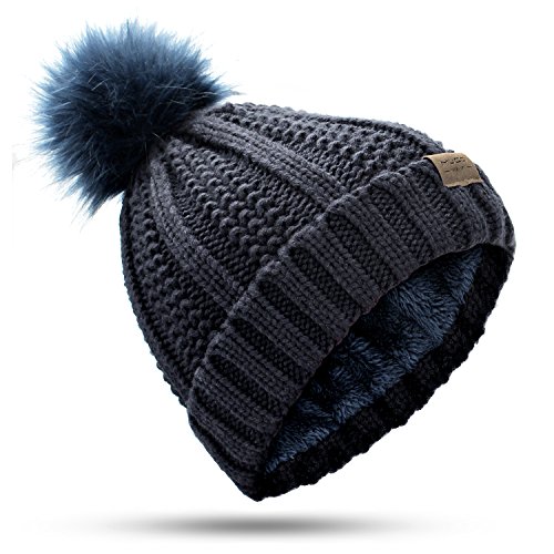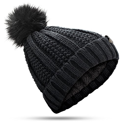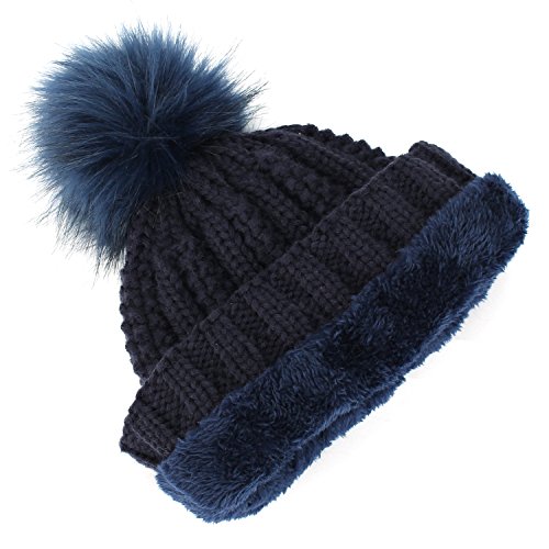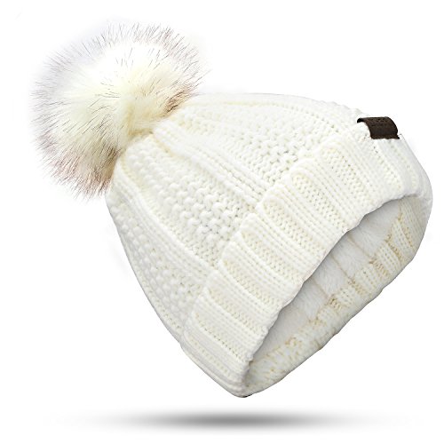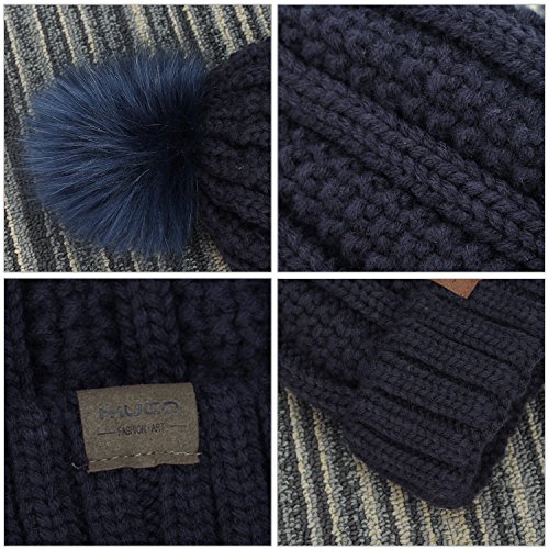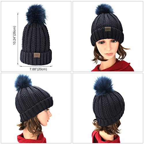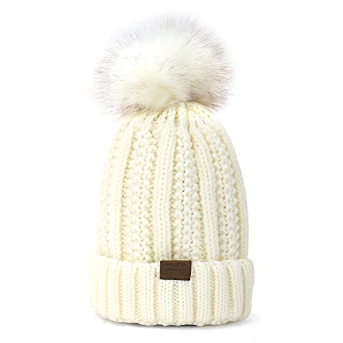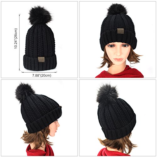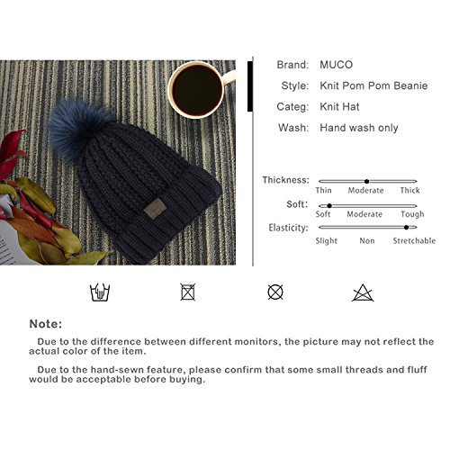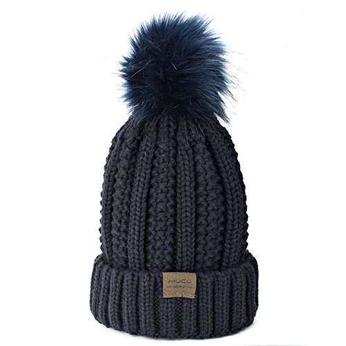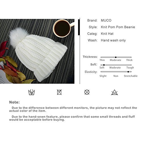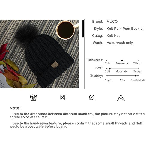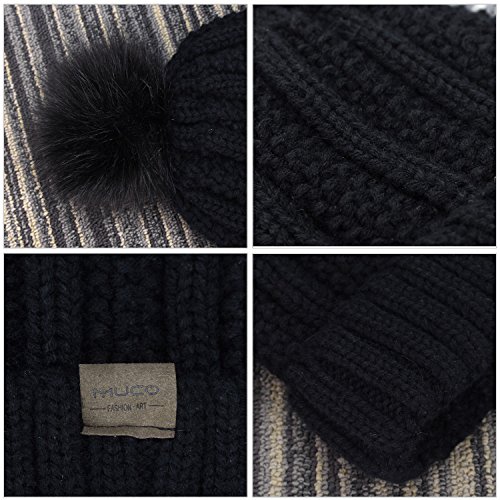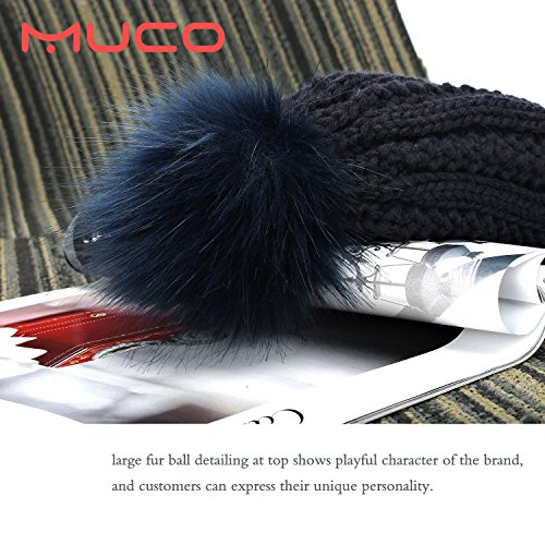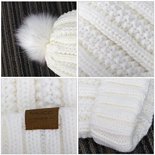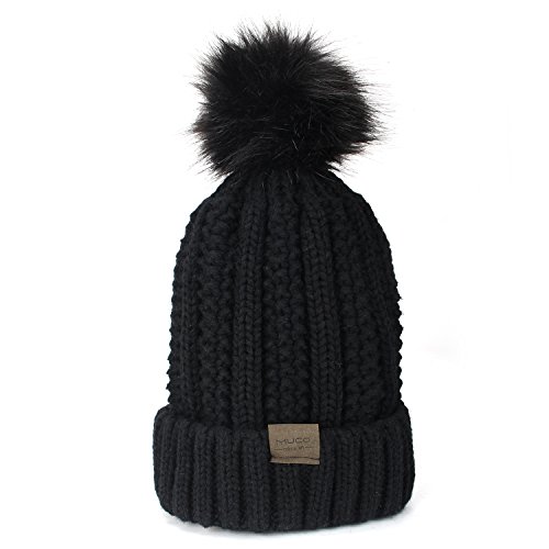 | (muco)/Accessories/Hats/DIRECT FROM USA/muco Womens Beanie Winter Hat Knit Chunky Faux Fur Warm Linling Pom Poms Hat Bobble Hat Ski Cap |