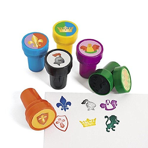 6 ~ Medieval Stamps Stampers ~ Self-inking ~ 1.5 inch / plastic ~ New / Shrink-wrapped.