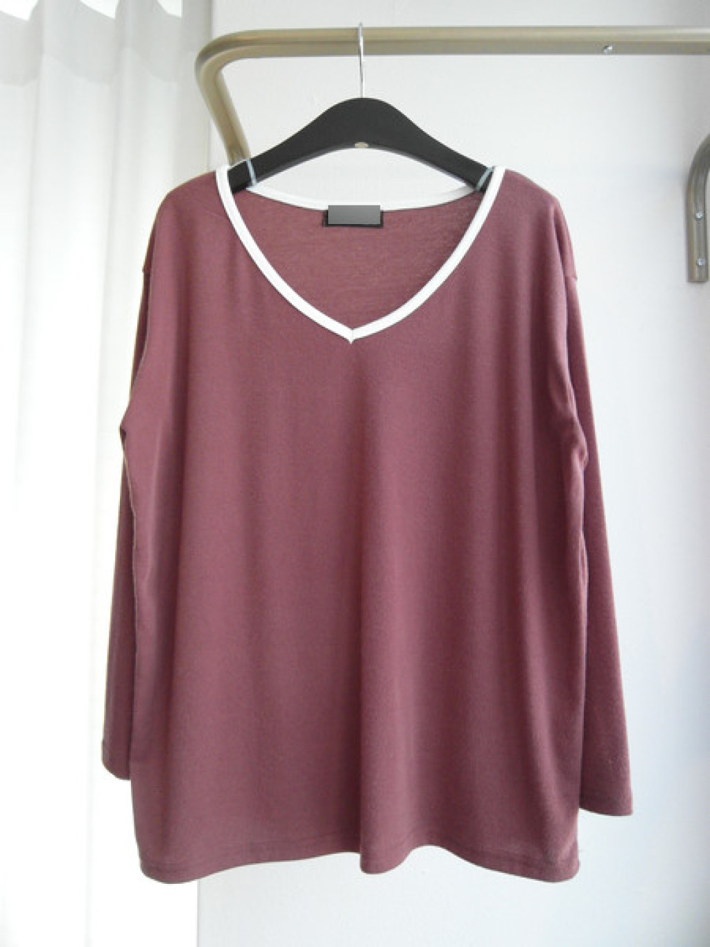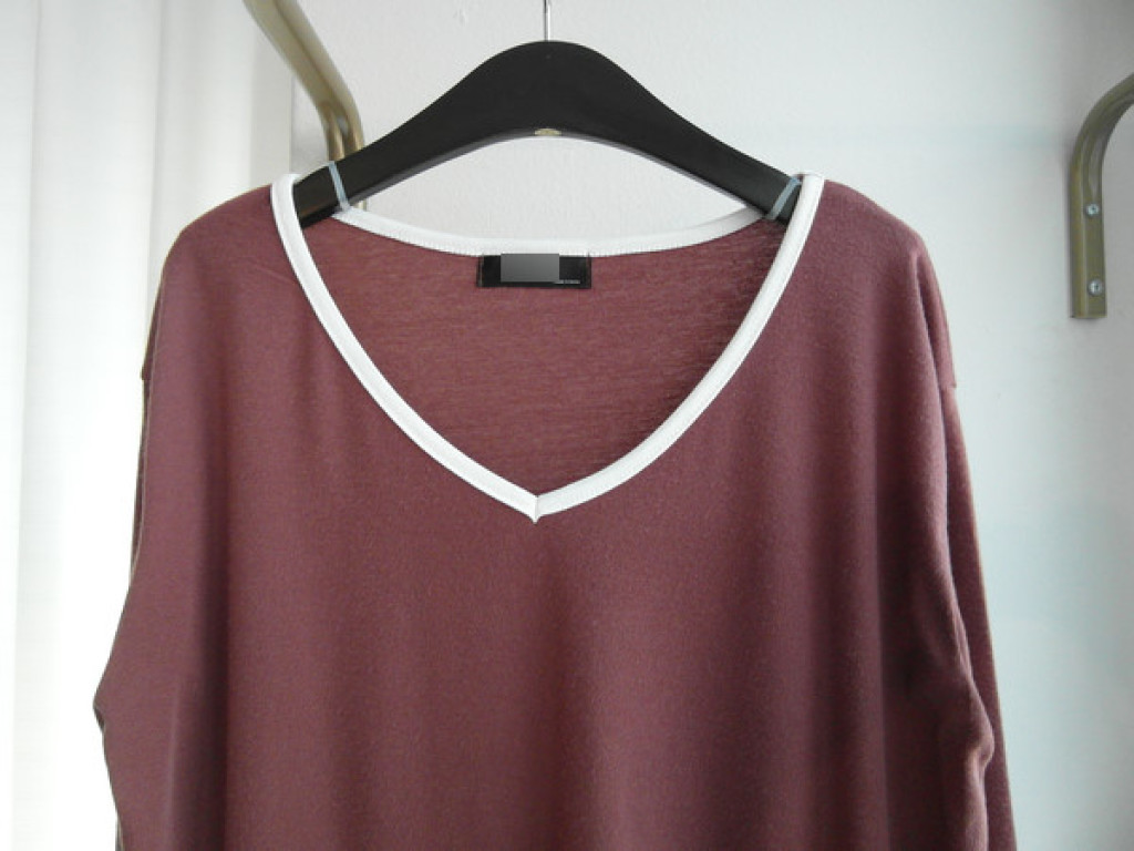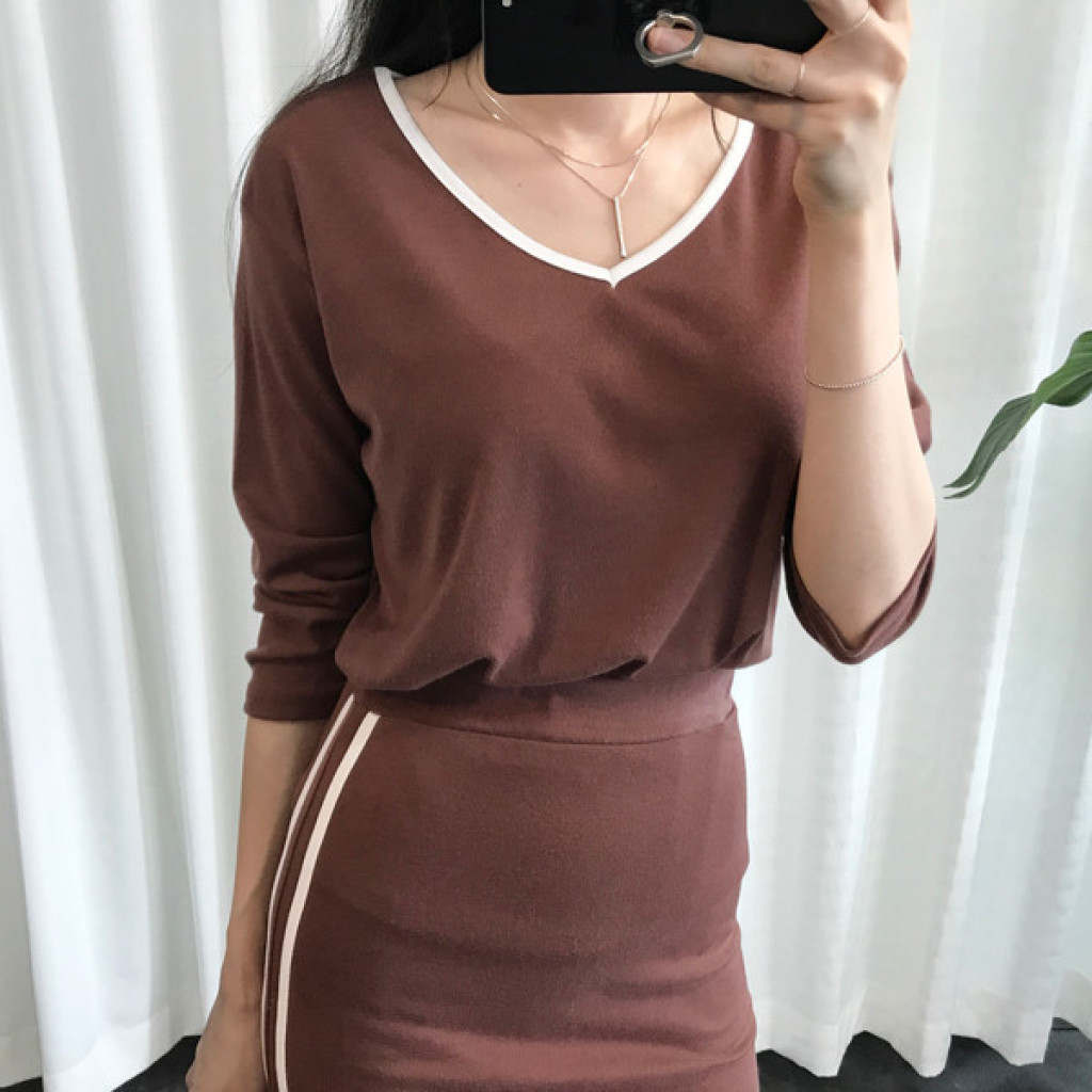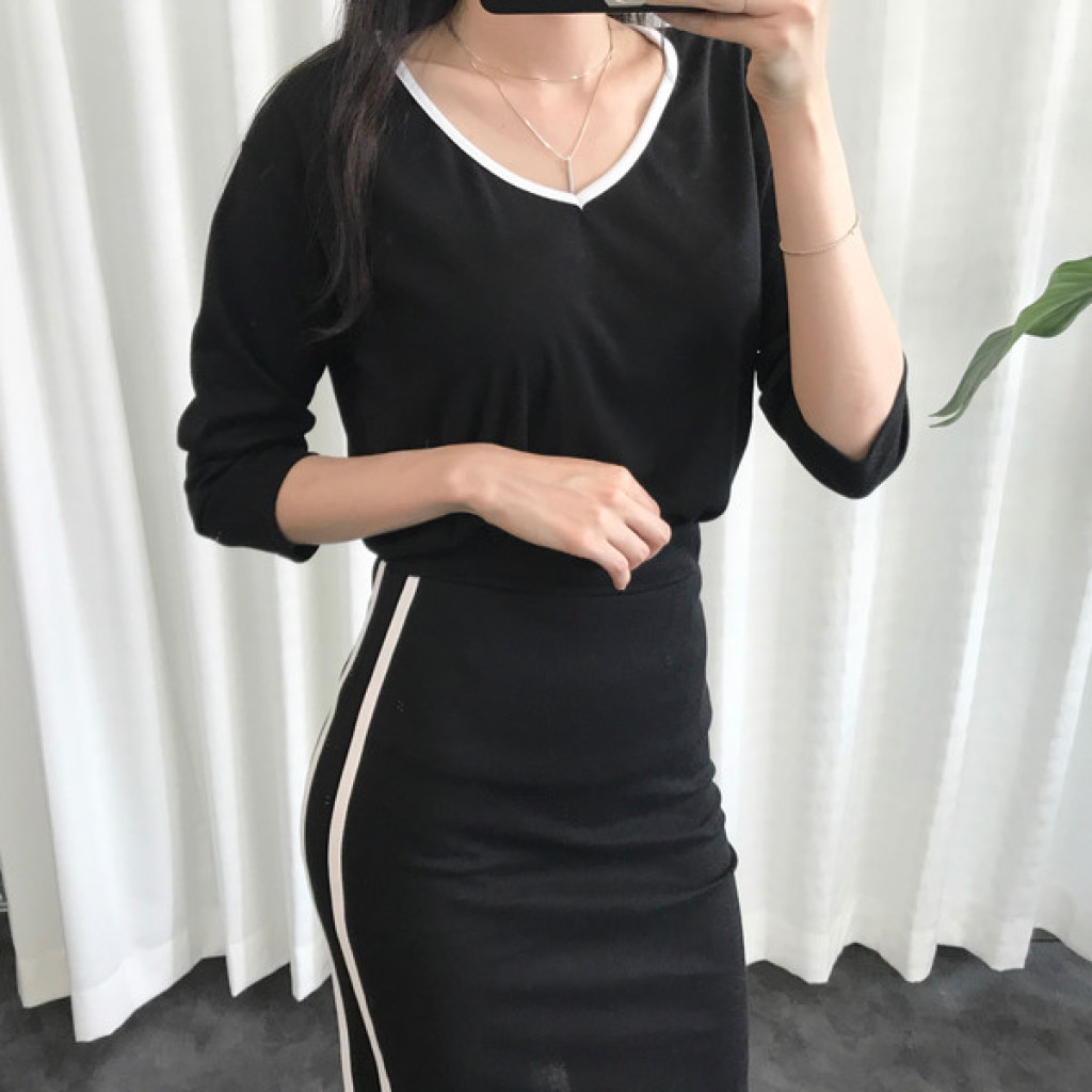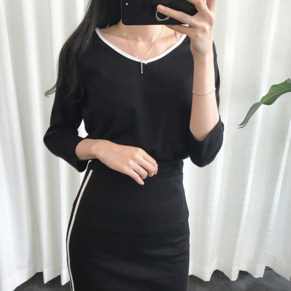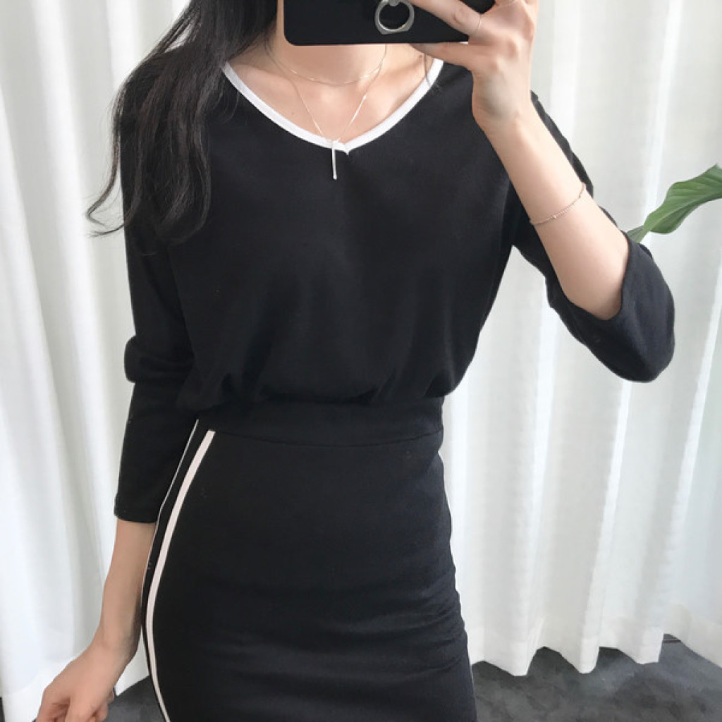 와이드한 브이넥을 따라 라인 포인트가 들어간