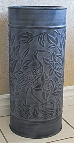 Studio : Excellent Accents Inc. Publisher : Excellent Accents Inc. Binding : Kitchen Product Description Iron umbrella stand bird design with baked-on enamel powdercoated finish. Height 20," Diameter 9." Embossed design with greywash color hand-detailed for elegant appearance. Rugged construction for residential or commercial use. Note: Because this item is detailed by hand finishes can vary slightly. 0