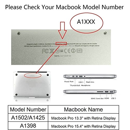 -. Binding : Personal Computers -. Brand : Applefuns -. Feature : HardShell Case: Soft Material; Ultra light; Heat dessipation vents; Full protection; Ultra-slim profile allows Apple logo to shine through; Anti-Slip Rubber feet; Free access to all ports. / Screen Guard: High optical characteristic crystal AR film protects your display form scratches,dirt and spill. / Keybaord Cover: Silicone material; Slim design; Dust-proof; Waterproof; Washable; / Dust Plug: Silicone material. Provides a tight seal to prevent dust damage your macbook. / Only fits for Macbook Pro 13.3" with Retina Display,without CD/DVD Driver(Model Number: A1502/A1425).The model number on the back of your Macbook. -. Label : Applefuns -. Manufacturer : Applefuns -. ProductGroup : PC Accessory -. ProductTypeName : CARRYING_CASE_OR_BAG -. Publisher : Applefuns -. Studio : Applefuns -. Title : Applefuns(TM) 4 in 1 Kit Matte Hard Shell Case + Keyboard Cover + Screen Protector + Dust Plug for Macbook Pro 13.3" & 15.4" with Retina display