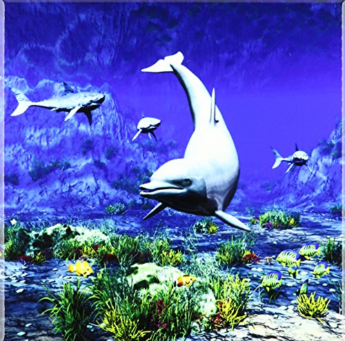 3dRose ct_172906_3 Underwater Scene with Dolphin, Sharks and Tropical Fishes-Ceramic Tile, 8-Inch