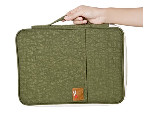It's made out of a sturdy material polyester nylon yet remains fairly slim and can be sponged off if you spill on it.