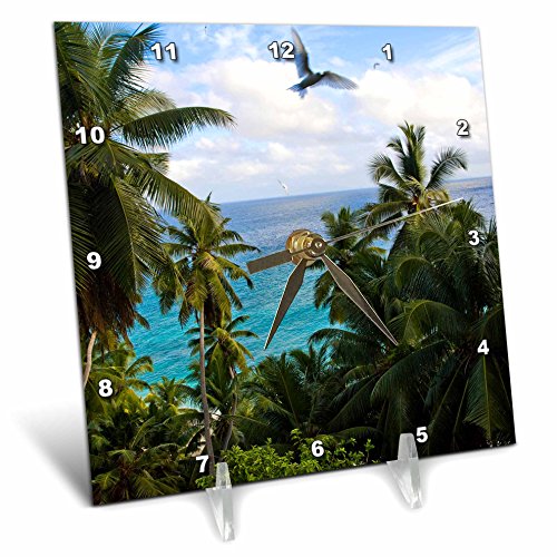 Palm Trees of Anse Victorin Beach, Seychelles, Africa-AF39 AWR0140 - Alison Wright Desk Clock is a wonderful complement to any room in your home or office. Made of durable high grade aluminum. This frameless clock has a high gloss mirror like, UV coated, scratch resistant finish and is suitable for a moist environment. Measures 6" x 6" and requires one AA battery; not included. Battery box is not covered.Feature