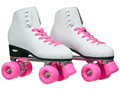 Epic Skates 2016 Epic Classic 10 High-Top Quad Roller Skates with Pink Wheels, White