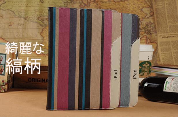 対応:iPad 第2世代 iPad 第3世代 iPad 第4世代 iPad mini 1,2,31.本体はもちろん、画面全体を覆うので液晶画面もしっかりガード。360°全面保護!! 2.ケースに横置きスタンド機能が付いて、動画の視聴の際に場所を問わず大画面を楽しむことが出来る! 3.各種操作ボタンやポート類のための穴が開いてるので充電や操作はケースをつけたままで可能です。キーワードipad 2 iPad 3 iPad 4 ipad mini 1 ipad mini 2 ipad mini 3 タブレット アイパッドミニ3 アイパットミニ3 カバー スマートカバー ipadミニ1 アイパッドエアーケース アイパットエアー レザー 軽量 スタンド機能 手帳型 PU革 人気 かわいい おしゃれ ブランド ゴムバンド 360° iPadミニ タブレットPC タブレットケース 縞柄 ※入荷状況により、デザイン性多少変更する場合がございます。あらかじめご了承くださいませ。