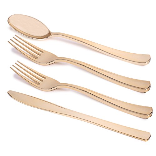 - COMBO PACK INCLUDES: 80 Gold Forks, 40 Gold Knives and 40 Gold Spoons