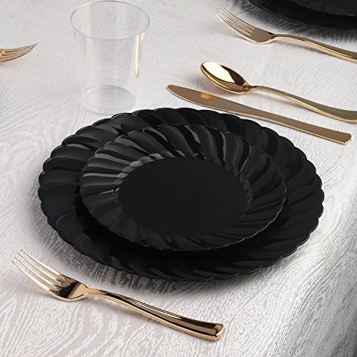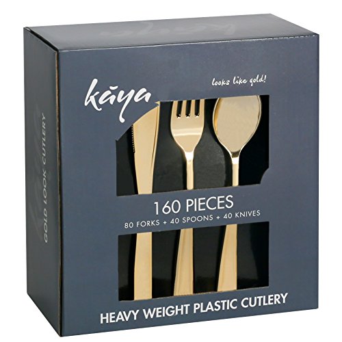 Kaya Collection - Disposable Plastic Gold Silverware Cutlery, Shiny Metallic Flatware 80 Forks, 40 Knives and 40 Spoons (160 Pc)
