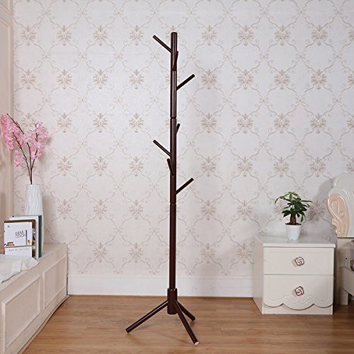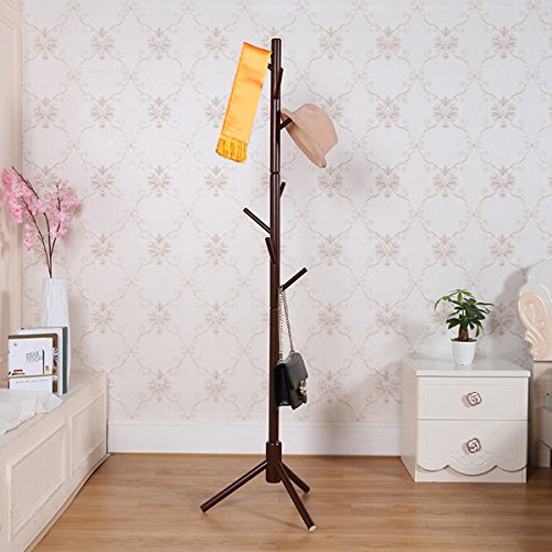 -. Title : Garwarm 8-Hooks Creative Simplicity Solid Wood Floor Finish Entryway Standing Coat Rack Hall Tree Hat Hanger Holder with Tripod Base for Jacket Clothes Scarves Purse