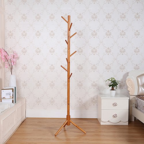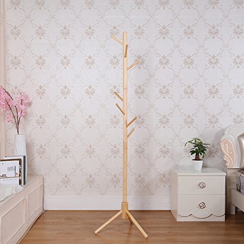 -. Feature : Material?Made of high-quality bold solid rubber pine wood coated with environmentally friendly lacquer.Clearly visible wooden texture,beautiful, hard to crack, corrosion resistance.It is strong and durable and ideal for your foyer, hallway, or home entry way. / Design?Natural and smooth finish, rounded corners, will protect your hands and garments from being scratched.Three legs of the bottom can make coat rack more stable.Simple, functional and stylish design is sure to dress up any home. It is perfect to add a touch of style to your entrance way. / 8 convenient hooks for your coats, hats, scarves, purse and much more. Large amount of clothes, save space, easy to take clothes.It is light enough to move to any room in the home.Sturdy enough for book bags or winter jackets etc. / Dimensions: Base diameter?40mm? height?176cm?Weight:2kg / No installation tools required?Simple structure,built-in screw-type link, easy and convenient assembly with hands.
